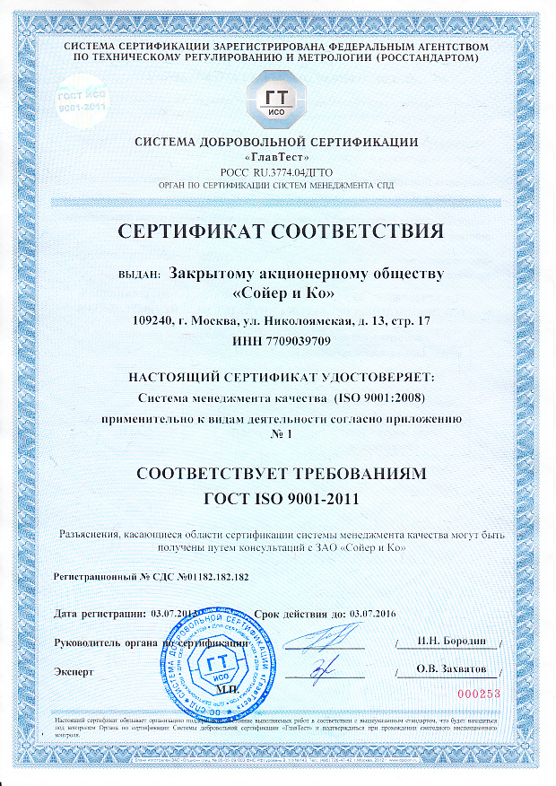 Сертификат ГОСТ ИСО