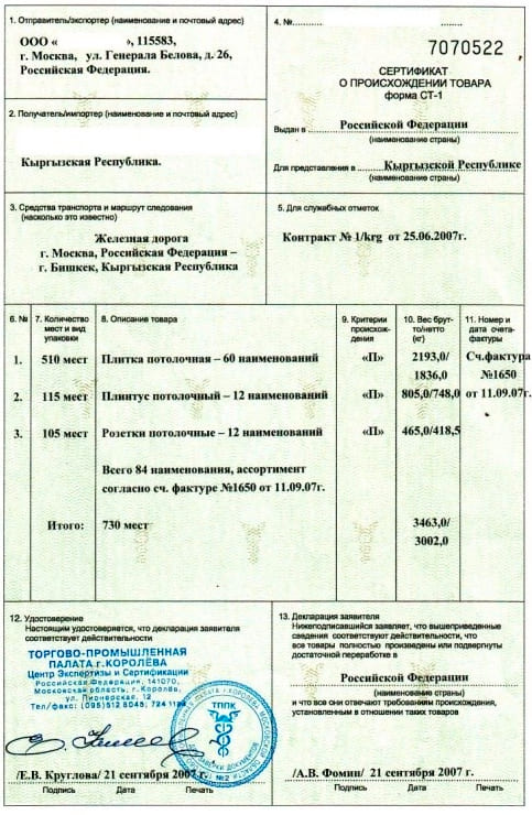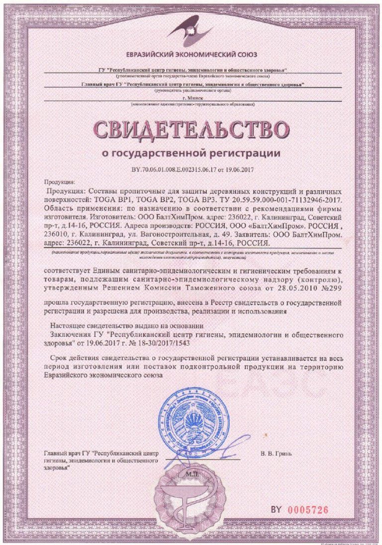 Сертификат Таможенного Регламента ТС