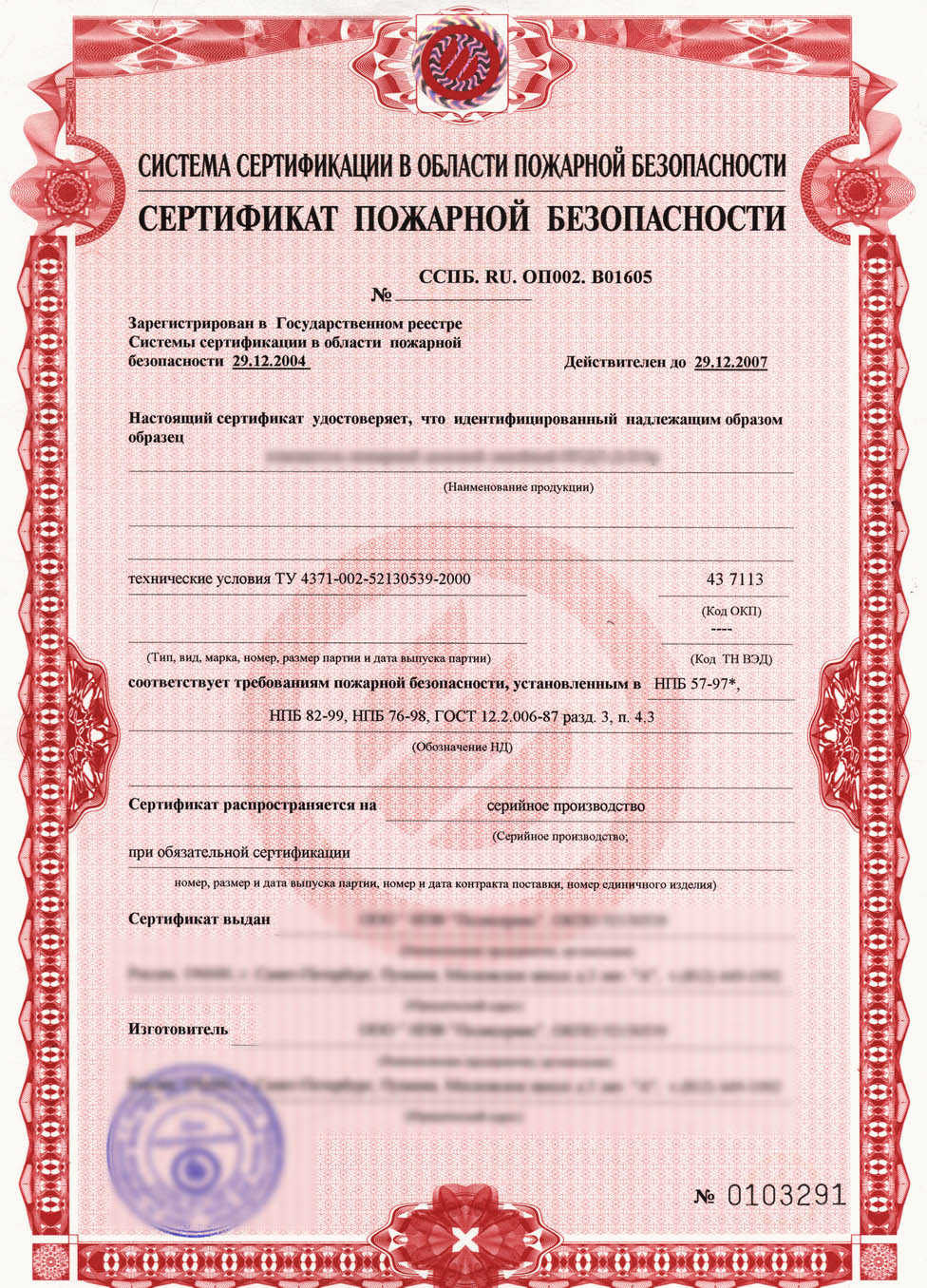 Сертификат Пожарной безопасности
