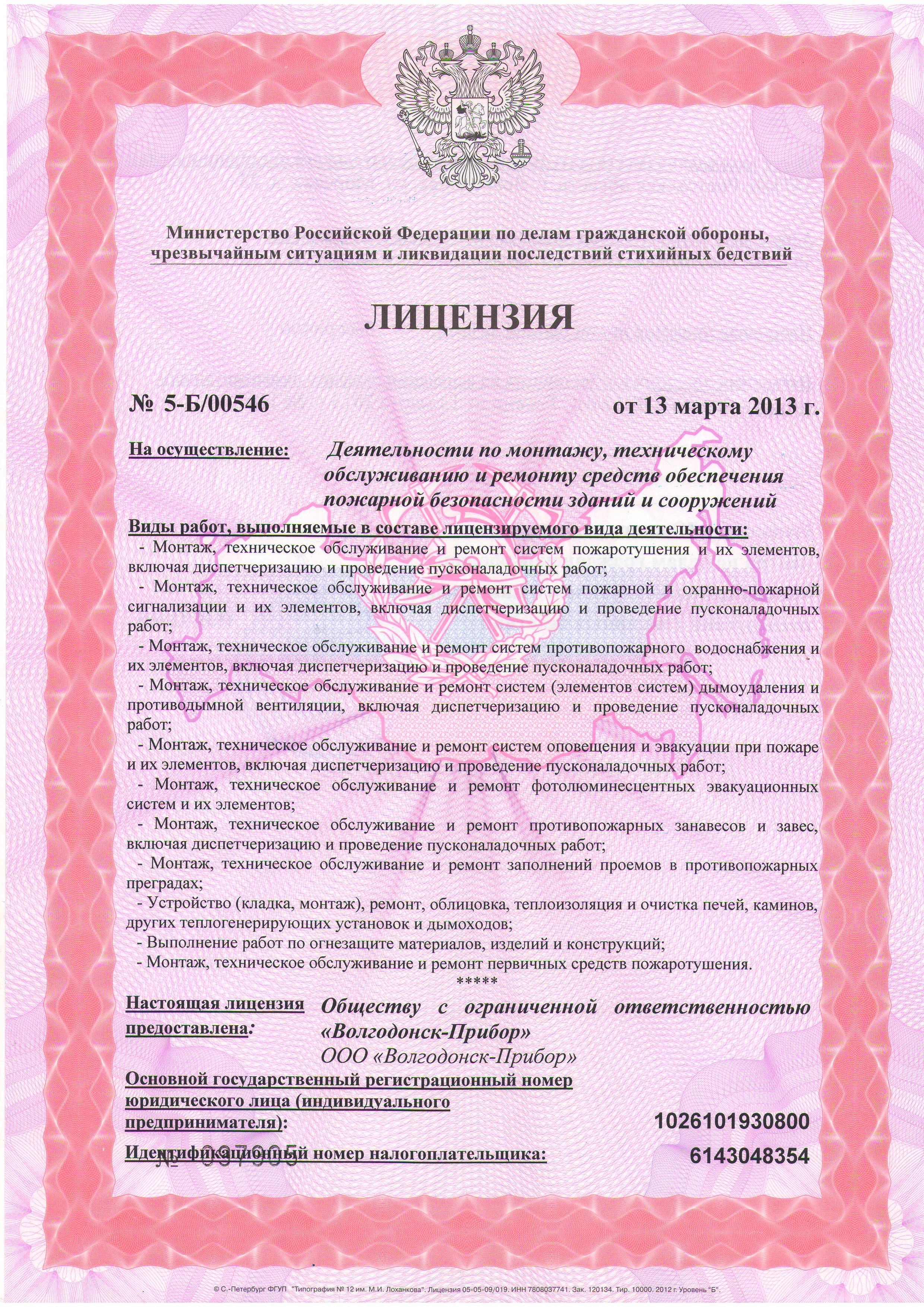 Лицензия на деятельность по монтажу, техническому обслуживанию и ремонту средств обеспечения пожарной безопасности зданий и сооружений