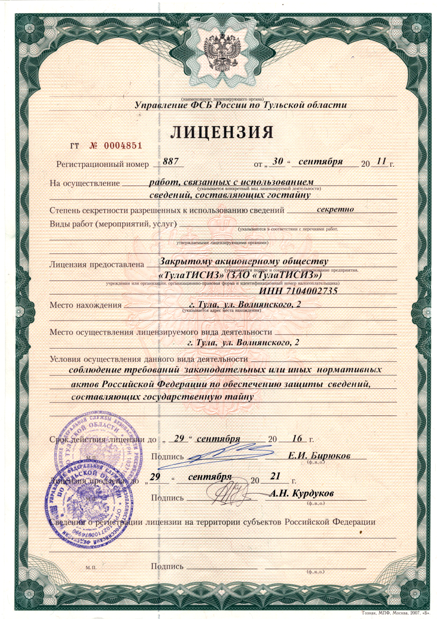 Лицензия ФСБ