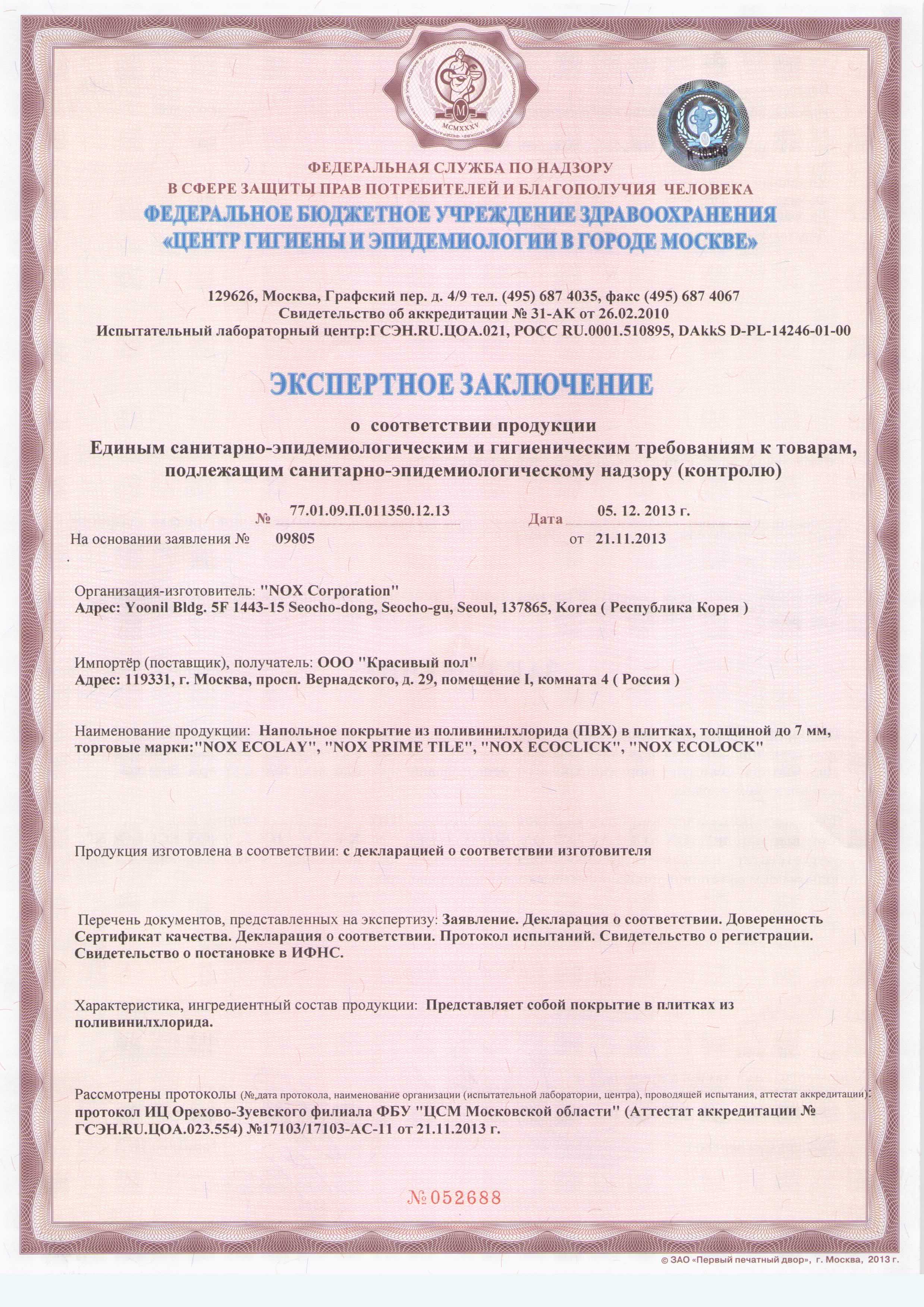 (с протоколом испытаний)