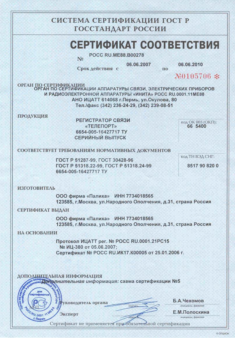 Сертификат Соответствия ГОСТ Р