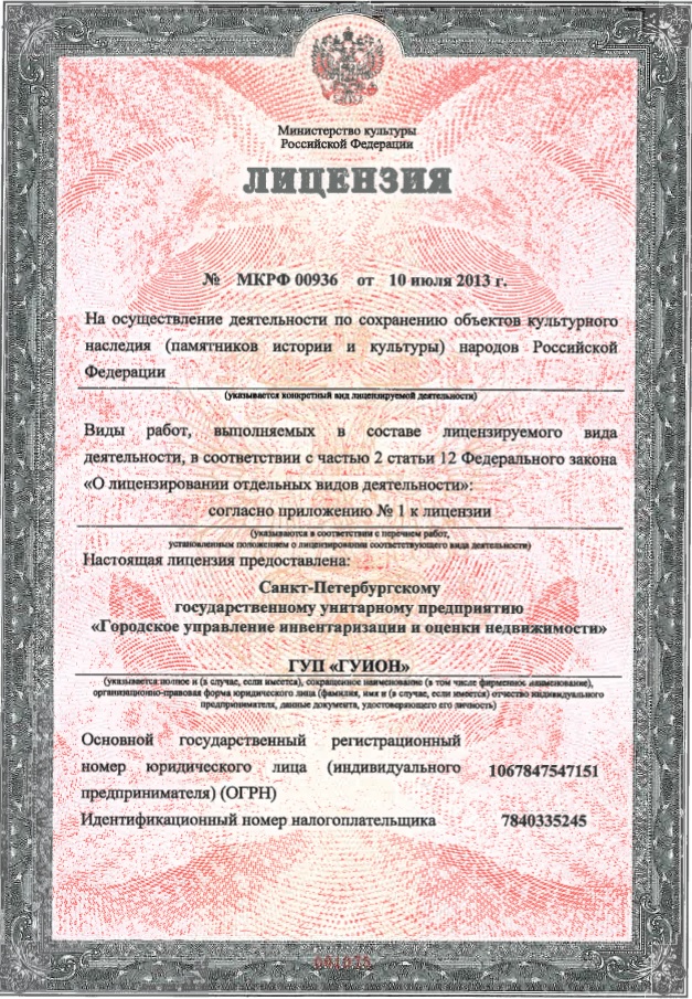 Лицензия на деятельность по сохранению объектов культурного наследия (памятников истории и культуры) народов Российской Федерации