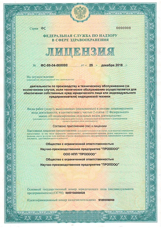 Лицензия на производство и техническое обслуживание (за исключением случая, если техническое обслуживание осуществляется для обеспечения собственных нужд юридического лица или индивидуального предпринимателя) медицинской техники