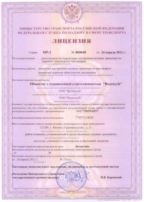 Лицензия на деятельность по перевозкам внутренним водным транспортом, морским транспортом пассажиров