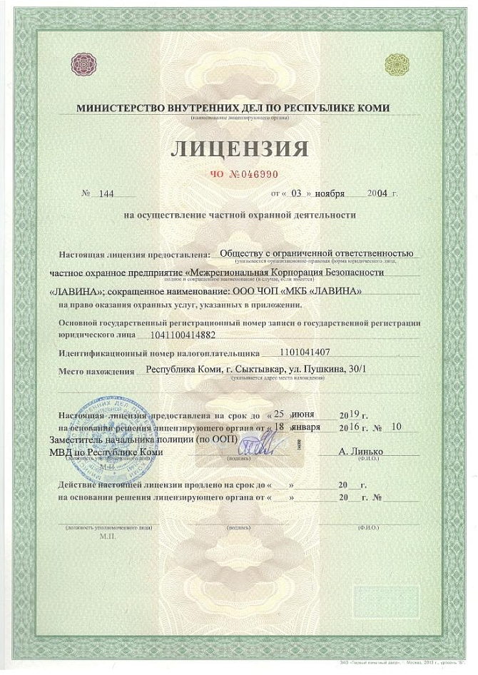 Лицензия на частную охранную деятельность