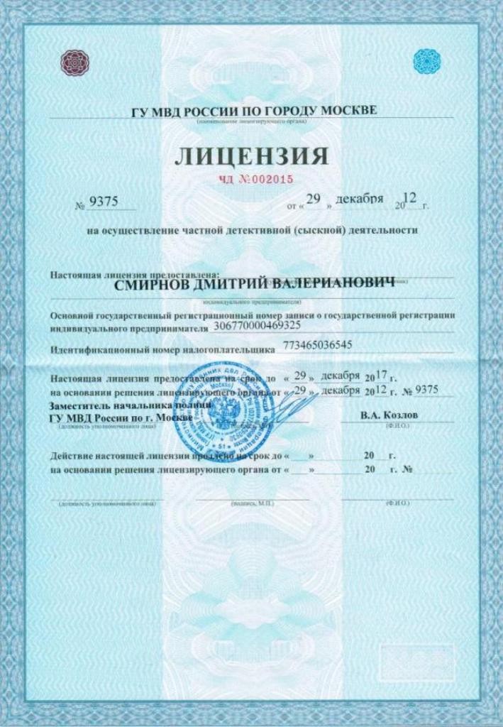 Лицензия на частную детективную (сыскную) деятельность