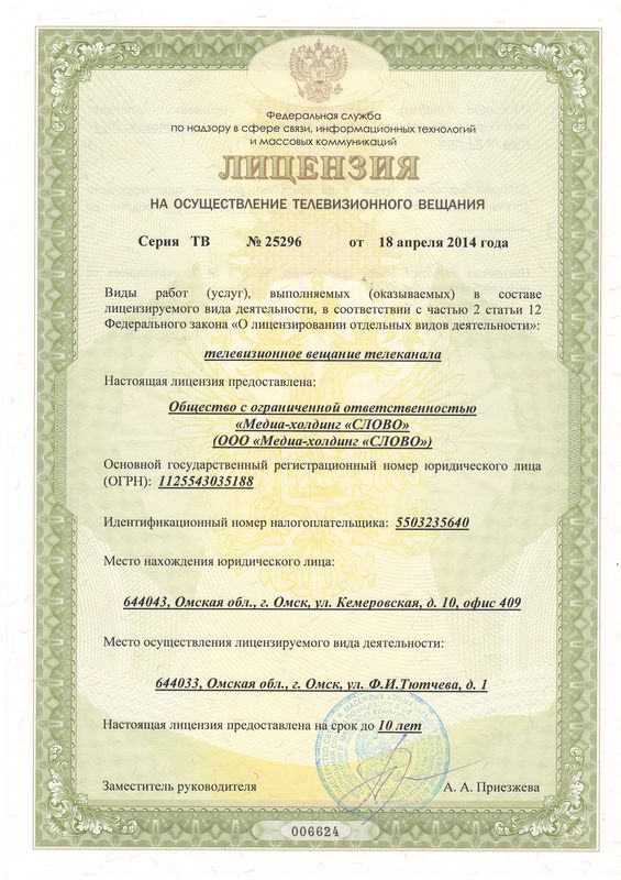 Лицензия на телевизионное вещание и радиовещание
