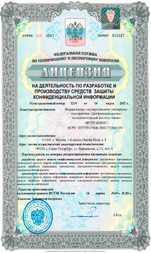 • Лицензия ФСТЭК